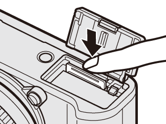 按下并松开存储卡将其部分弹出(为避免存储卡从插槽滑落,请按下存储卡的中央并慢慢松开,注意按下后不要将手指立刻离开存储卡)。此时即可用手将卡取出。