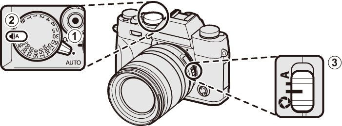 若要控制快门速度和光圈(P、S、A 和 M 模式),请将自动模式选择器拨杆旋转至