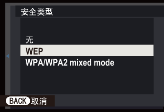 3. 高亮显示网络所使用的加密类型并按下 MENU/OK