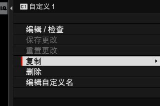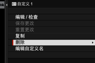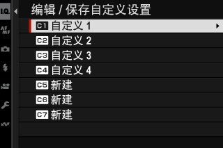 使用 x编辑/保存自定义设置 调用保存到自定义设置库 1 到 7(自定义 1 至 自定义 7)的设置。