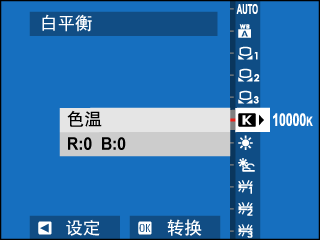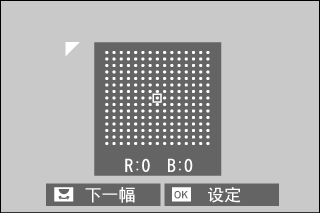 - 向左或向右按下对焦棒调整青色-红色轴上的颜色。