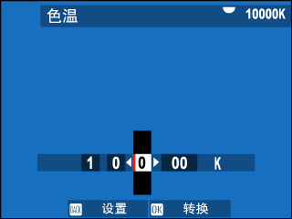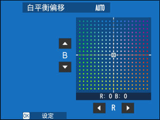 - 向上或向下按下对焦棒调整蓝色-黄色轴上的颜色。